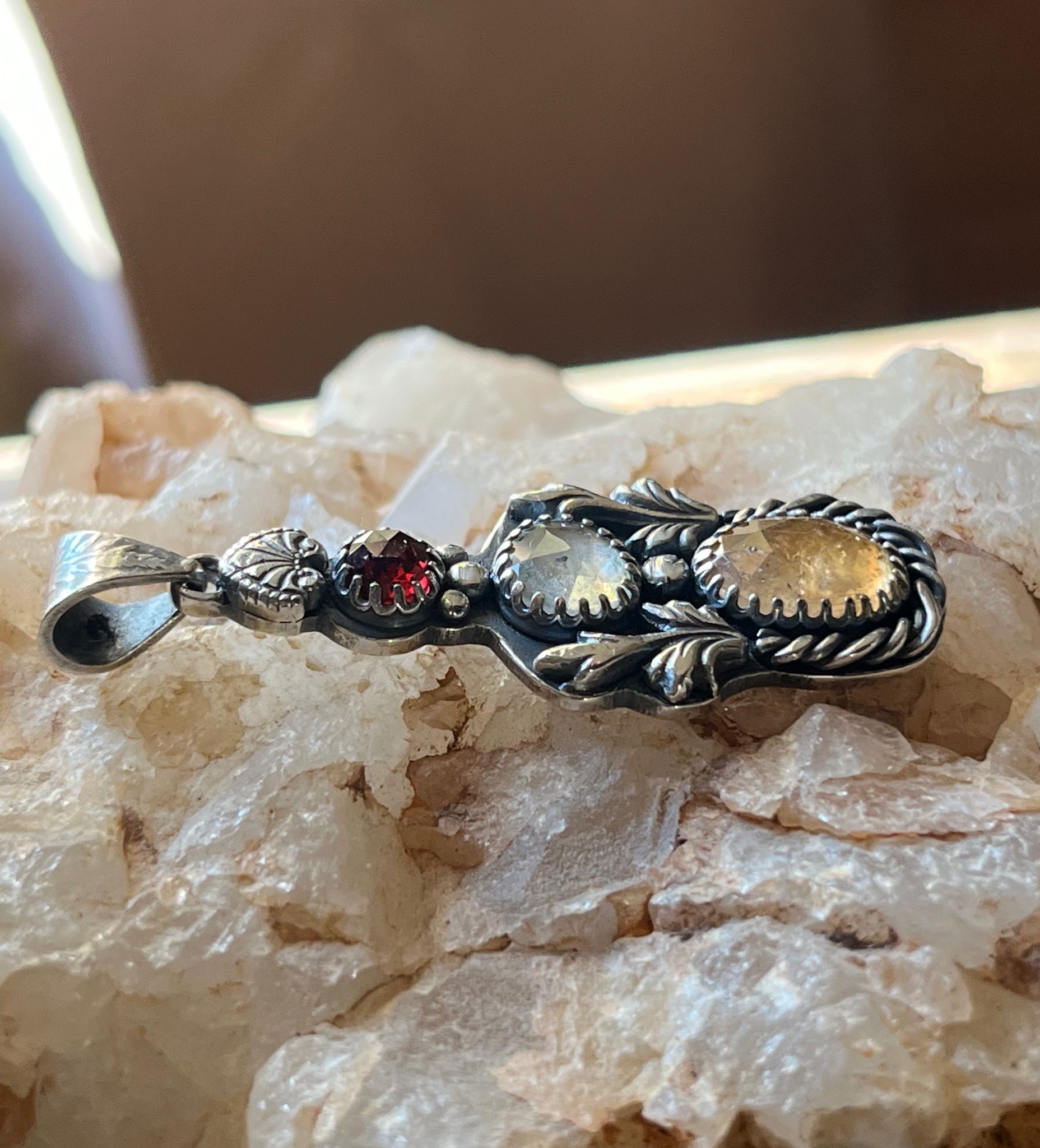 Autumn Series Fairest Pendant, Garnet and Topaz in Handcrafted Sterling Silver