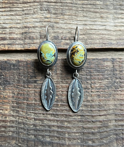 Blackjack Polychrome Turquoise Hand Stamped Earrings, Handcrafted Sterling Silver