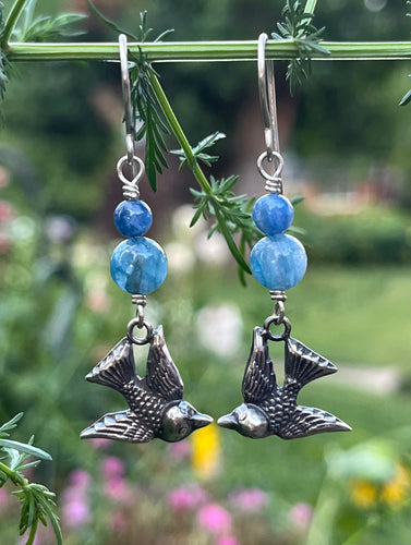 Lovebird Drop Earrings with Kyanite Beads, Handcrafted Sterling Silver