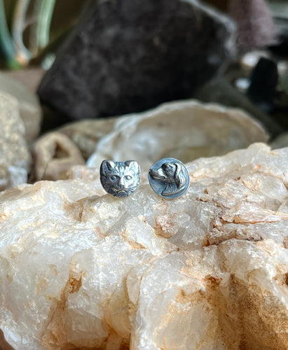 Cat and Dog Silhouette Post Back Earrings, Solid Sterling Silver